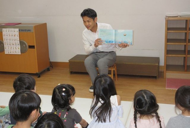お祝い絵本の読み聞かせが、園長先生のプレゼント。