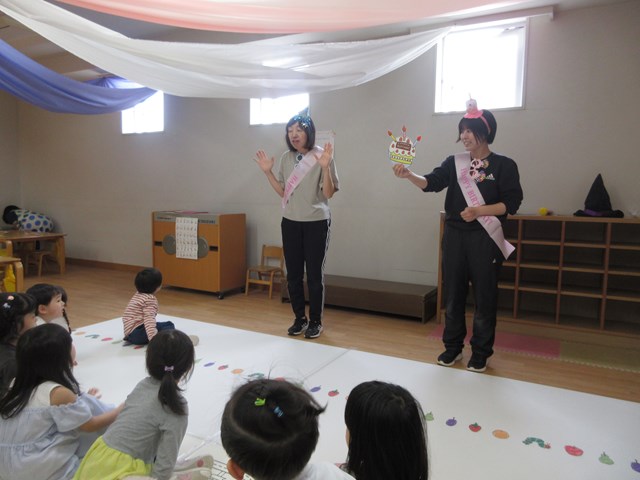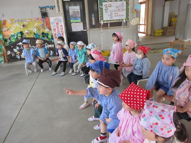 まだ入園して一か月も経たない年少組さんも、自分でマイクを持って、堂々と一生懸命お話ししている姿にびっくり。そんな姿を見せてくれるなんて、先生達には何よりのプレゼントだったよ。