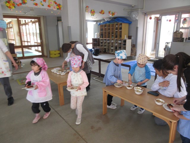 子ども達、自分でとっても上手に作っていましたよ。笑顔がいっぱいのひとときでした。