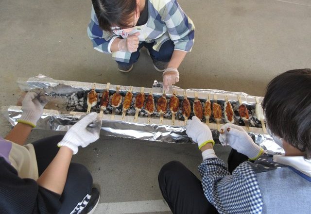 手形の後は、いよいよ炭火で五平餅を焼いていこう!子ども達は真剣な眼差しです。