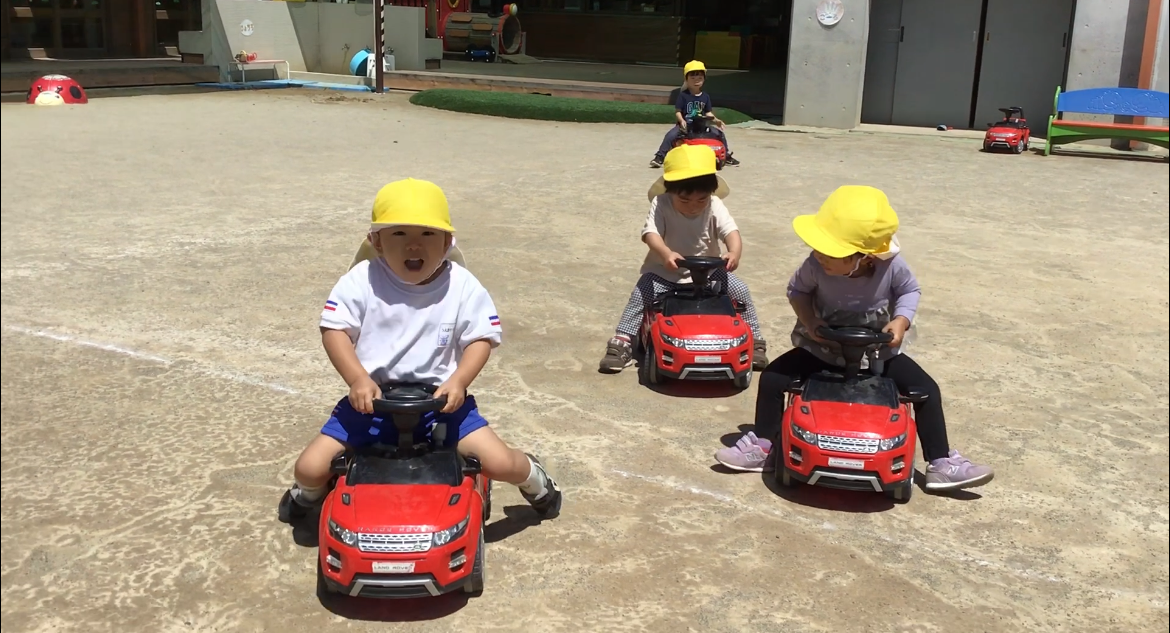 園庭でも、人気のレンジローバーを交代でドライブしたり、砂場遊びを満喫したり。