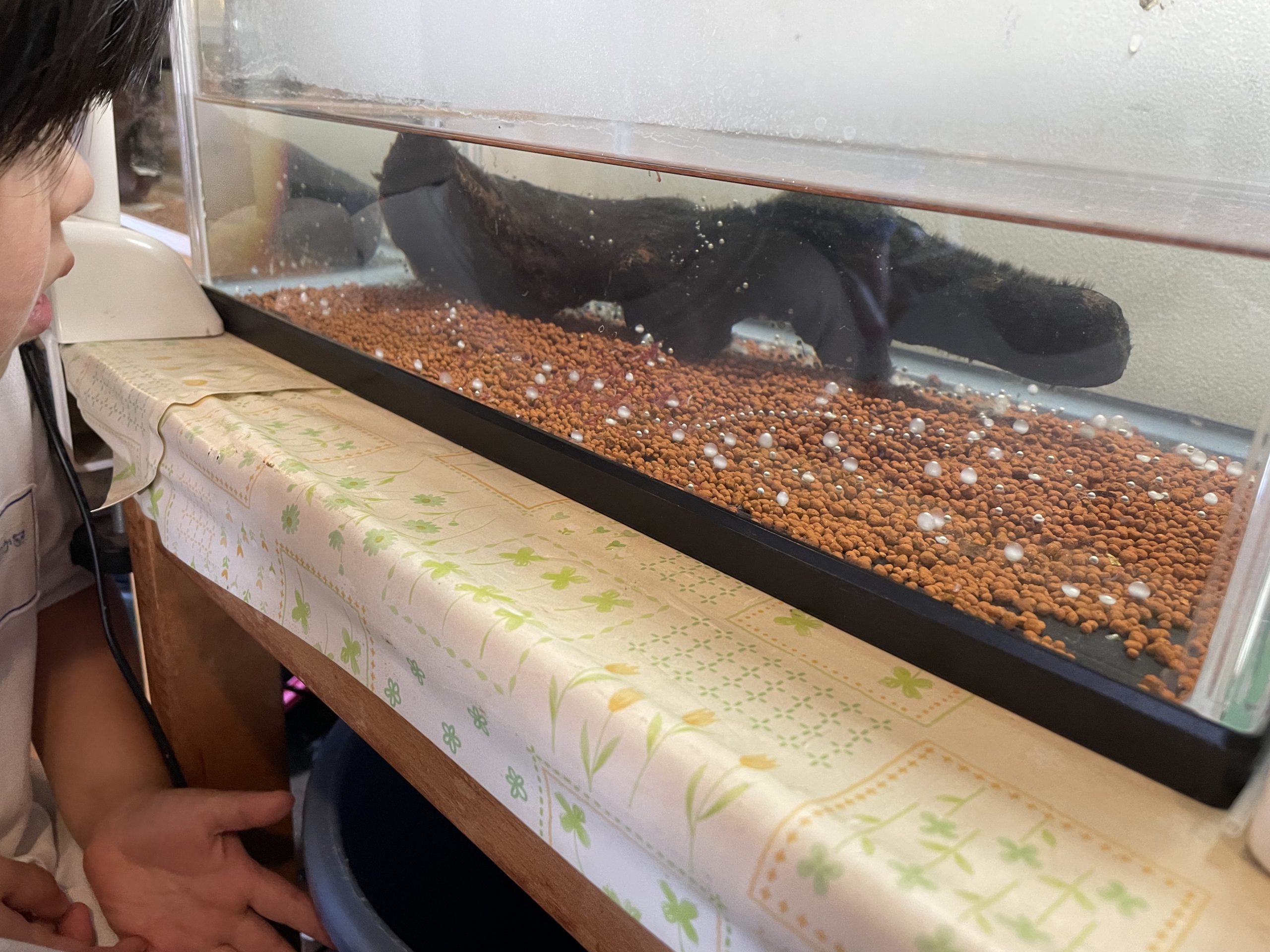 子ども達も「たまごじゃん、これ!!」「これ、完全にたまご?」と大興奮で水槽を覗き込んでいます。