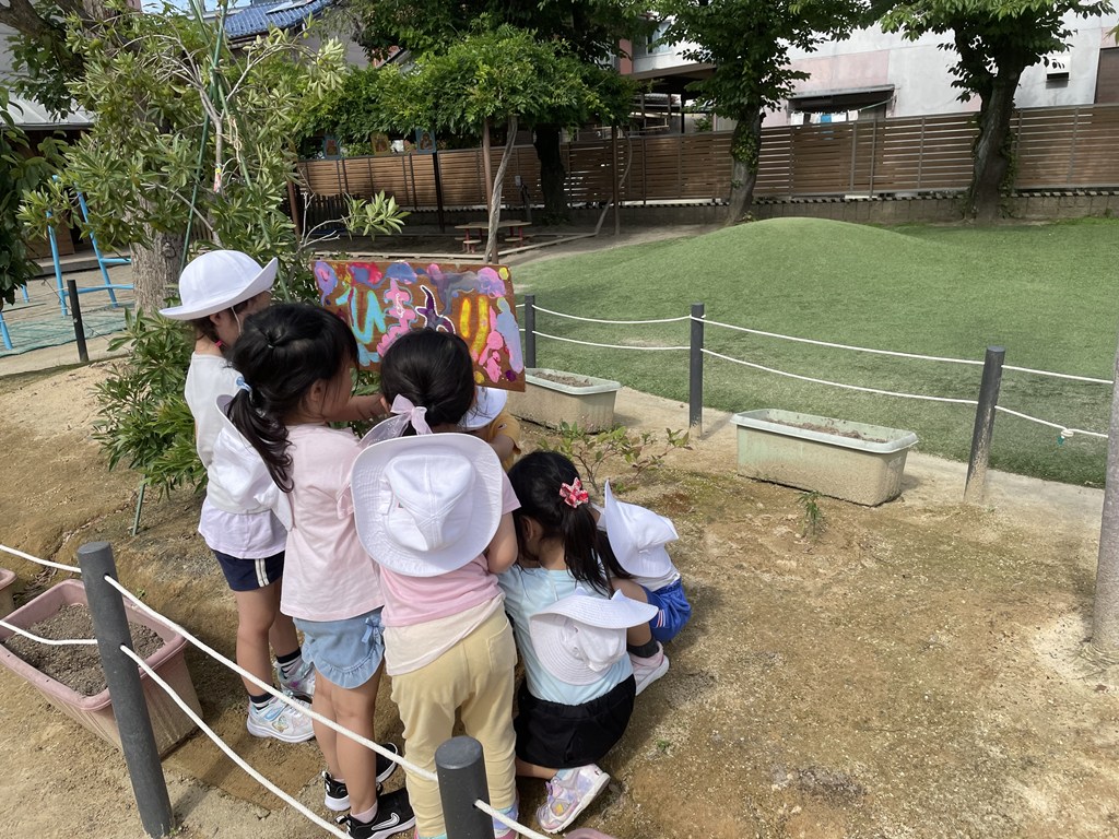 みんなは大喜び😊「おおきくな~れ」の気持ちを込めて、夢中で描きました。