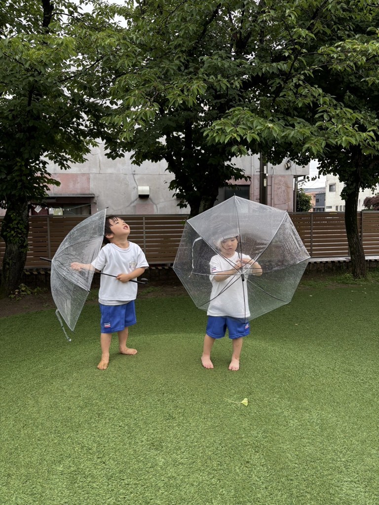 子ども達の傘の使い方がとっても安定していて、びっくりです。お家でも、雨の日は傘を持ってお散歩しているのかな??