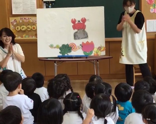 最後に・・・専門講師では有りませんが、今週のぴーかぶークラブで好評だったパネルシアターを年少組さんにも楽しんでもらいました。