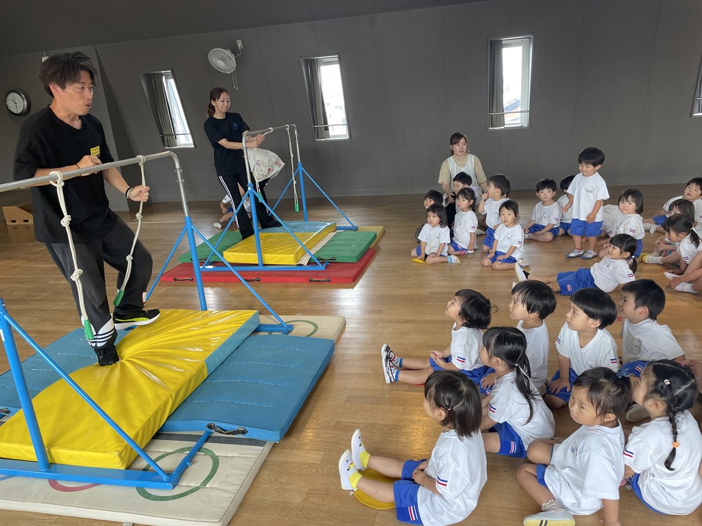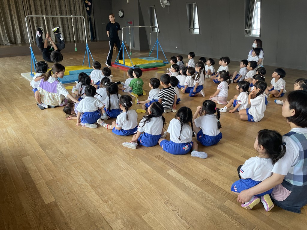 最後に、「年長さんになるとこんなこともできるんだよ」と大塚先生がスパイダーマンのポーズを見せてくれました。わぁ~!!と大歓声。