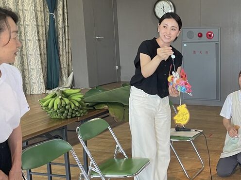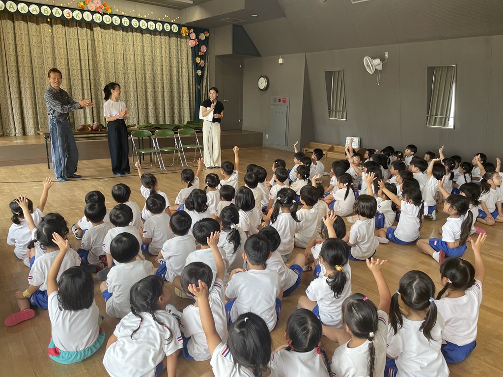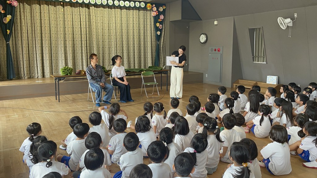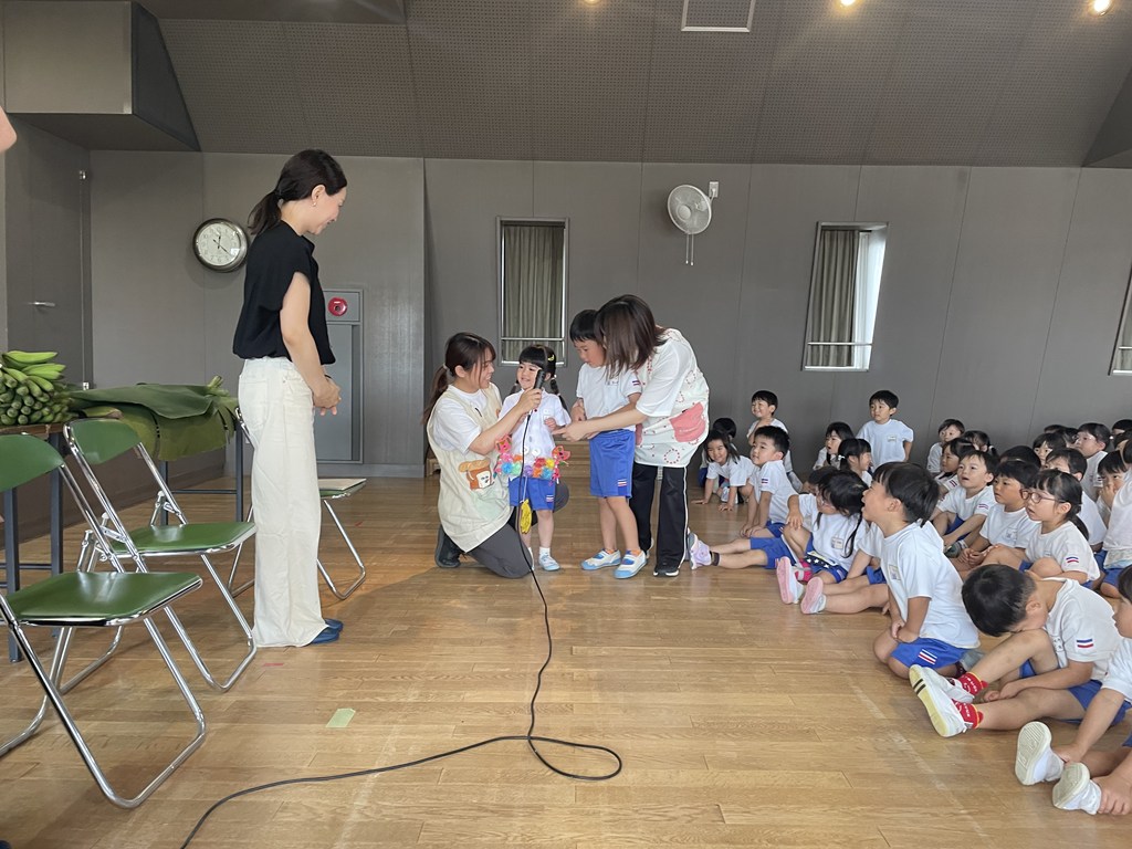 園長先生のブログ「わかばのかぜ」にも記されているように、本日7月9日(水)、各務原の信長バナナ農園さんが幼稚園を訪問され、年中組の子ども達に『バナナのおはなし会』を開催しました。