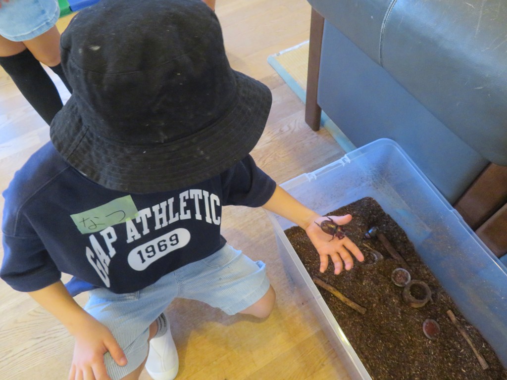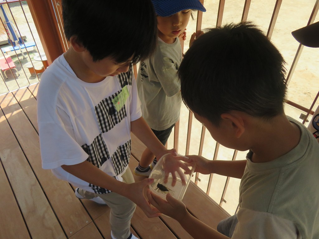 「こうやって、虫かごを優しく揺するといいんだよ。」