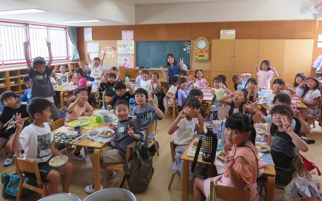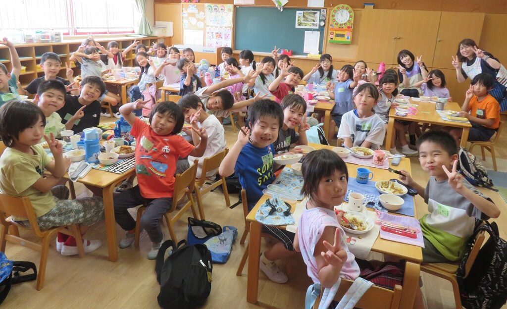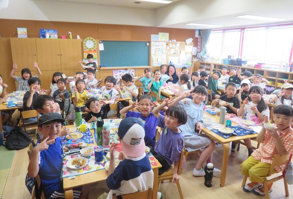 たっぷり遊んだあとは、念願のお給食!!みんなは、もちろんおかわり続出。