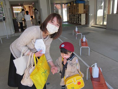 マスクの下のお顔は、にっこり笑顔かな?それとも緊張してるかな?・・・先生達は一人ひとりの表情を想像しながら、心をこめて「ご入園、おめでとう!」