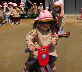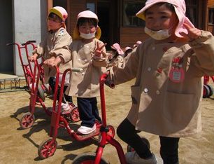 みんなの先生が見守る中、初めてのスクーター遊びをして、意外とスイスイ乗れちゃうみんな。楽しかったね♪