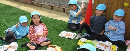いつものお給食も美味しいけれど、やっぱりお外の景色を眺めながらのランチタイムは特別な気持ちになれるね♪