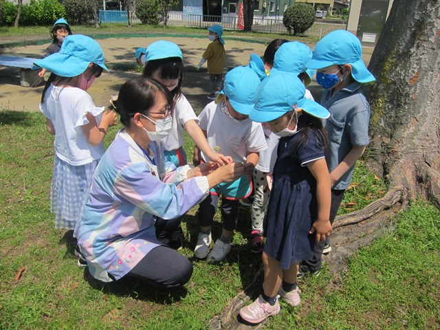 幼稚園周辺にはまだまだいろんな公園があるので、バスに乗って安全確保をしながら、「虫さがし」にいきたいと思っていますよ!年中、年少組のみんなも楽しみにしていてね。