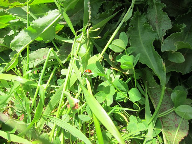 「先生、虫がいないよ」「ぼく、全然見つけられない」と、次々場所を変えて探している姿もありました。そこで、テントウムシを見つけた子に「どうやって見つけたの?」と聞くと「ちょっと大きい草の周りを見ていたらいたんだよ」「かさかさって草が動いたら虫がいたよ」と教えてくれました。