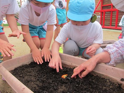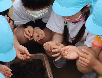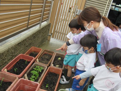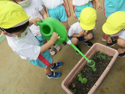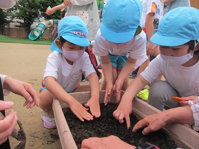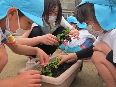 それを見ていた年長組さん。「ぼくたちもやりたいなあ」「何か育てたいんだけどな」