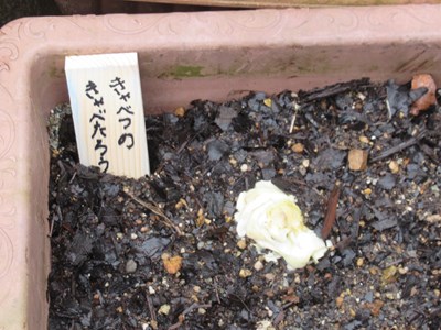 給食で切り落とした、にんじん、キャベツ、小松菜の根っこなどの『野菜くず』・・・これが『大事な大事な苗』に変身😊