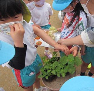 そこで、園長先生が「この葉っぱは、納豆に入れるとおいしいよ。先生もお家で育ててるよ。」みなさん、わかりますか?