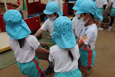 一人で運ぶと「おもた~い!」と腰を痛める原因にもなるプランターですが、今回は「やってあげる!」と子ども達が力を合わせて、ひょいっと運んでくれました。力持ちさん達、ありがとう。
