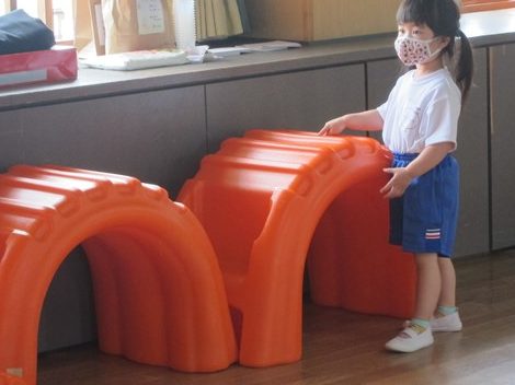 さあ、次は、おばけトンネル👻 前がみえないからドキドキ。でも、みんな、速くくぐれるようになってきたよ。がんばれ、けんちゃん。