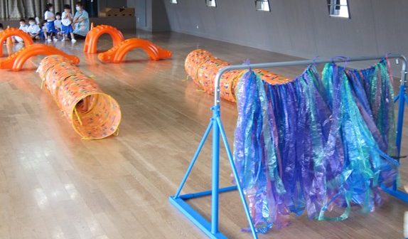 じゃあ、たくさんくぐるの術を使ってみよう!ずらりと並んだトンネルに、子ども達は「早くやりたい!!」