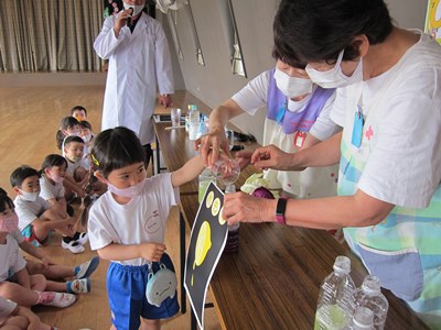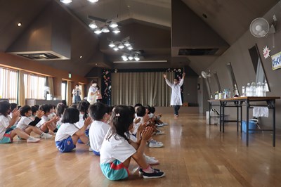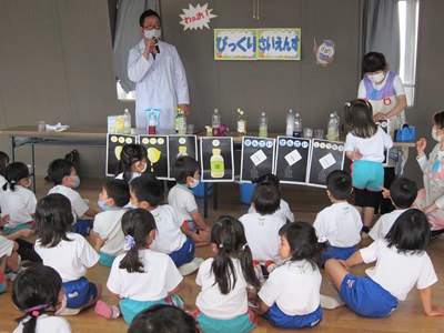 そこで、25日に年中組のみんなを、身近な物をつかった『わぉ!びっくりサイエンス』にご招待しましたよ😊