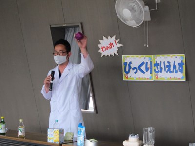 洗剤を入れたときには紫ジュースが『青色』になり、みんなはそれに一番びっくりしていましたよ。
