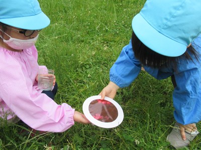いつも園長先生から虫について教えてもらっている子ども達と一緒に『虫探し』をする機会が増えた私達。今日は赤いアブラムシをみた瞬間に、子ども達の喜ぶ顔が脳裏をよぎり・・・ワクワクする気持ちを共に味わいながら過ごしています😊