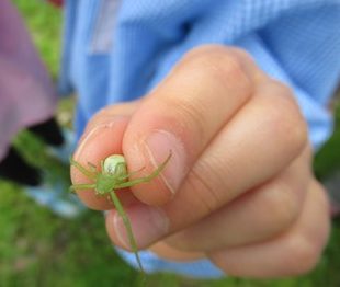 お腹がぷっくりしたクモ!!幼稚園でしらべてみよっと。