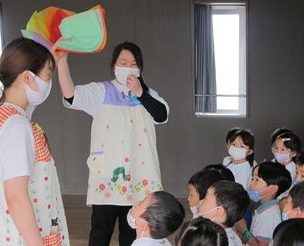 「トマト手裏剣だー!」とおいしそうな手裏剣に「パクッ!」と食べるしぐさをしたり。とってもかわいい姿に思わず笑ってしまった先生達でした。