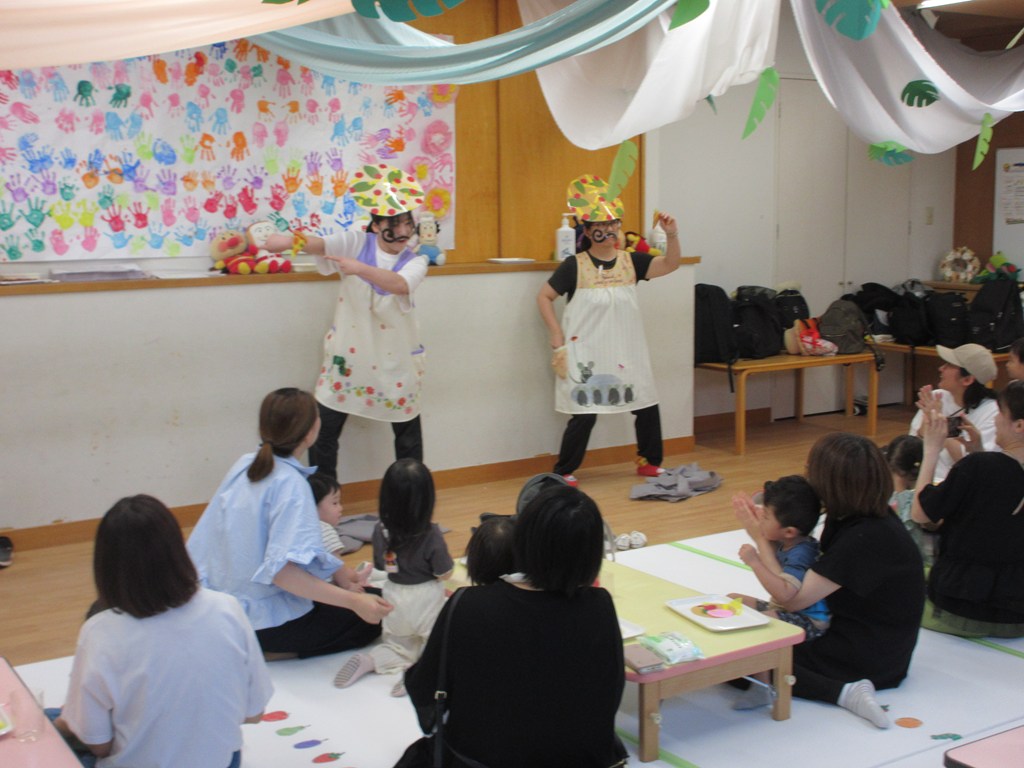 そこへ、先生達が『ピザマン』になって登場!切れのあるダンスが始まると、皆さんから手拍子が😊