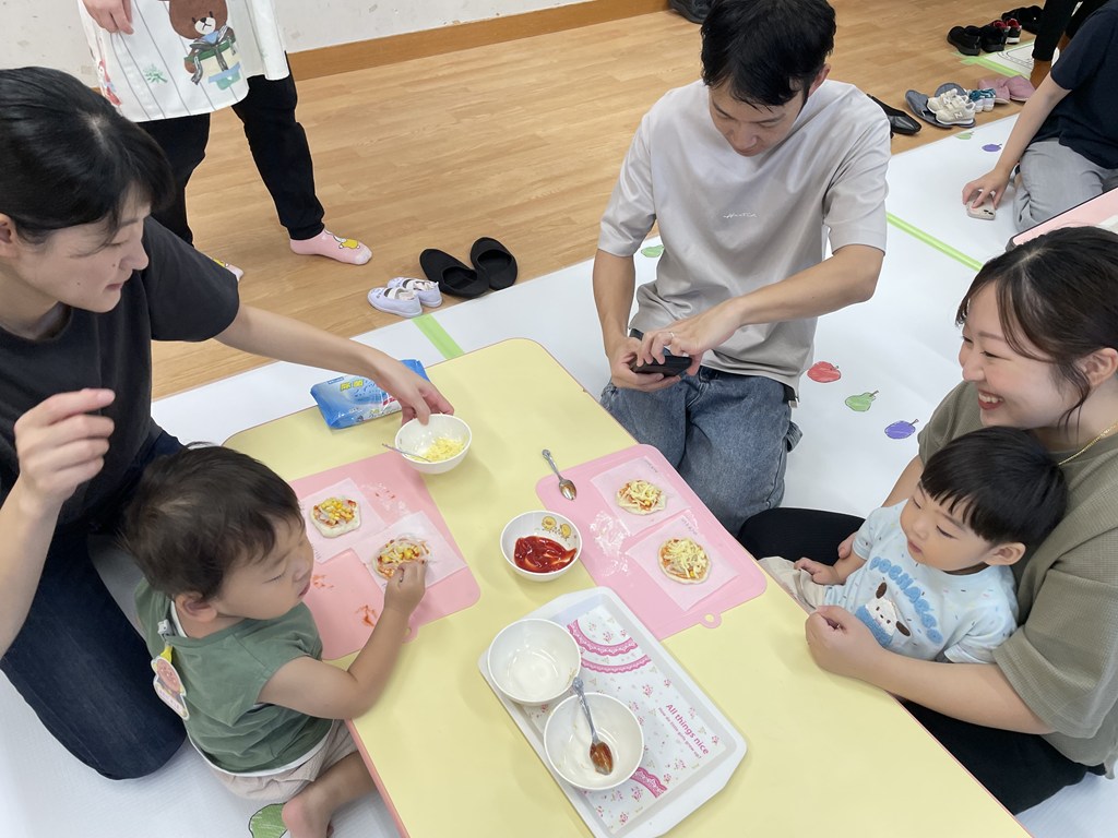 1歳・2歳のこどもたち。今回はなんと、2種類のピザを作っちゃいました!!みんな、がんばったね、。