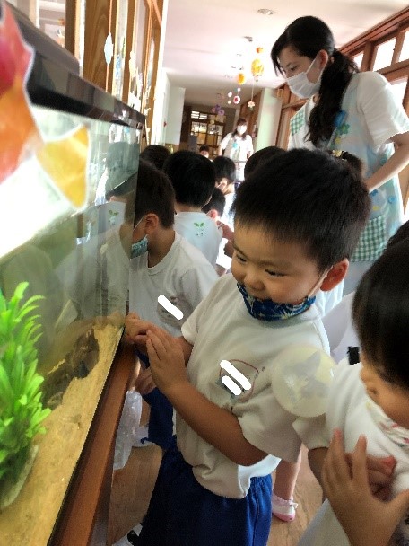夏休み中は私たちがしていた生き物のお世話ですが、今週から生き物当番が再開し、子どもたちが交代でお世話をしてくれています。