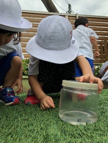 写真がなくて伝えられないのが残念ですが、ダンゴムシを探している時や、水中で泳げるのかどうか検証している時、夢中になって取り組んでいる子どもたちの表情は、言葉では言い表せないほど生き生きしています。