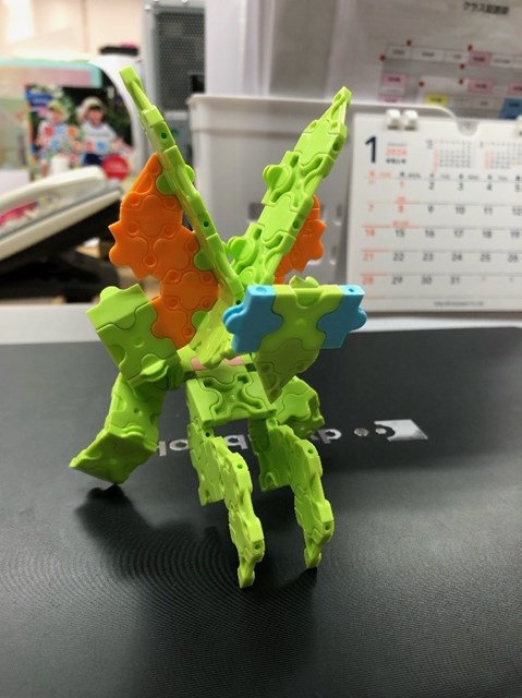 年長さんがラキューで作ったカマキリを見せてくれました。