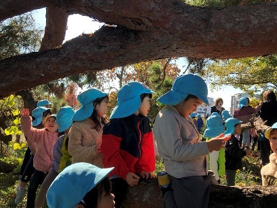 年中さんは、木をかき分け、穴をくぐり、探検に夢中になっていました。