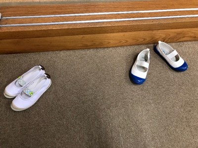 教務課に畳のお部屋があります。二人組の年少さんがやってきて、「先生、このまま入っていい?」と土足のまま畳にあがろうとしていました。